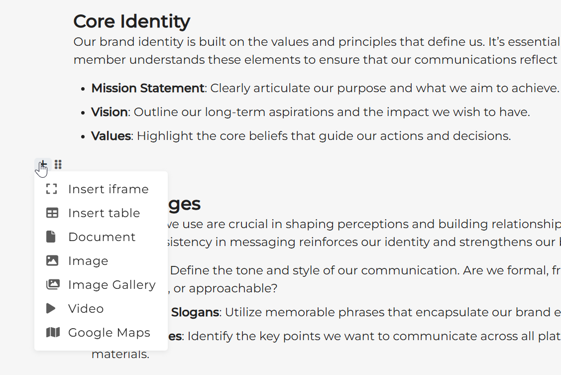 The Pages text editor is also brand new, providing an enhanced editing experience! With both inline text editing, and adding content blocks, the new editor makes it even easier to create content in diggspace!