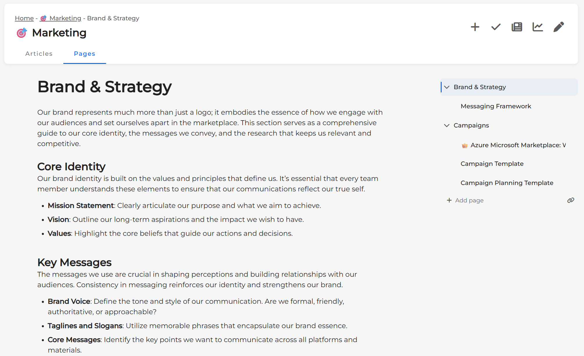 Channel pages let you organize information in a structured manner. This makes it easier to find relevant content well after it has been published, making it useful for sharing evergreen information.